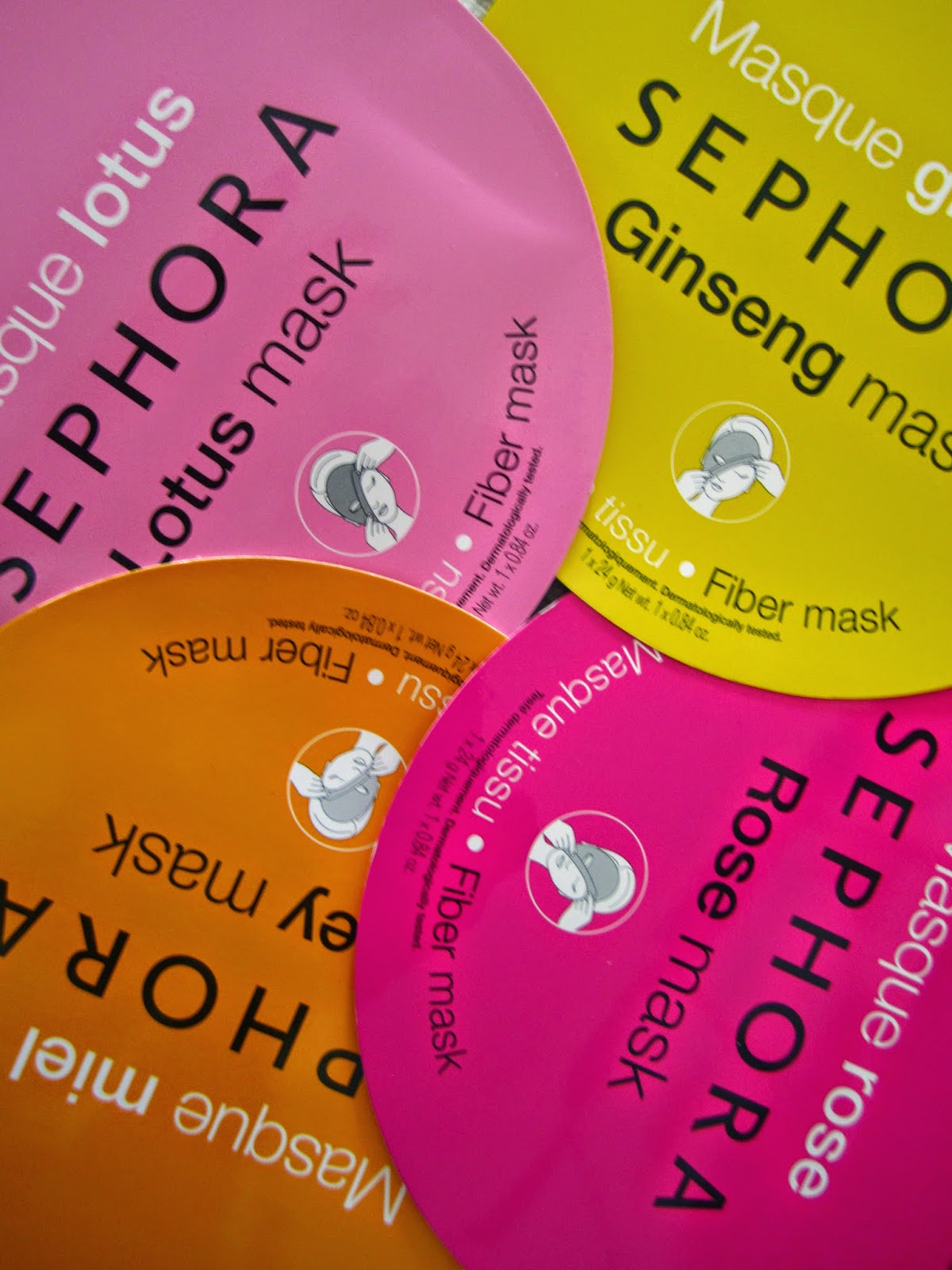 J'en fais ( à peu près ) un par semaine mais, juste après, n'oubliez pas de vous faire un masque hydratant et, pour ce faire, Sephora vient de sortir une toute nouvelle gamme de masque en tissu : en usage unique et au prix unitaire de 3€95, il en existe 8 sortes aux parfums différents pour chaque propriété :